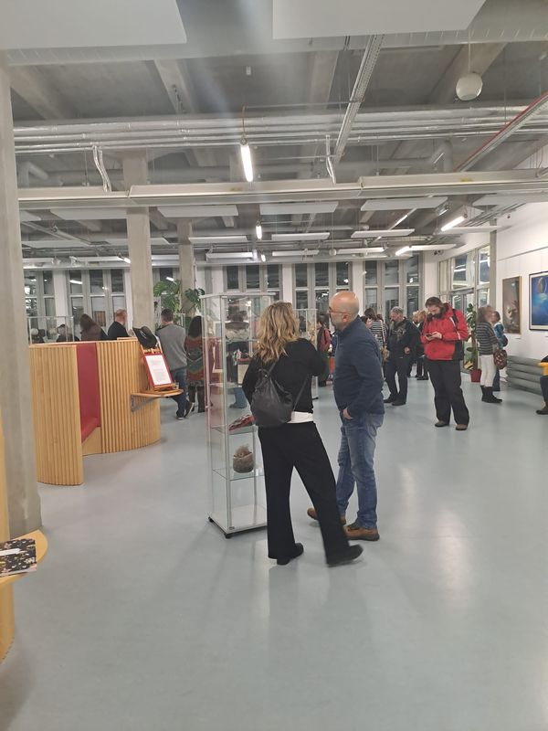 Společná výstava výtvarnice a keramičky Martiny Jiroutové a malířky Kristiny Pecharové s názvem Prolínání v rozjímání je k vidění do 27. února 2026 ve foyer 1. patra Městské knihovny ve Wonkově ulici v Hradci Králové.