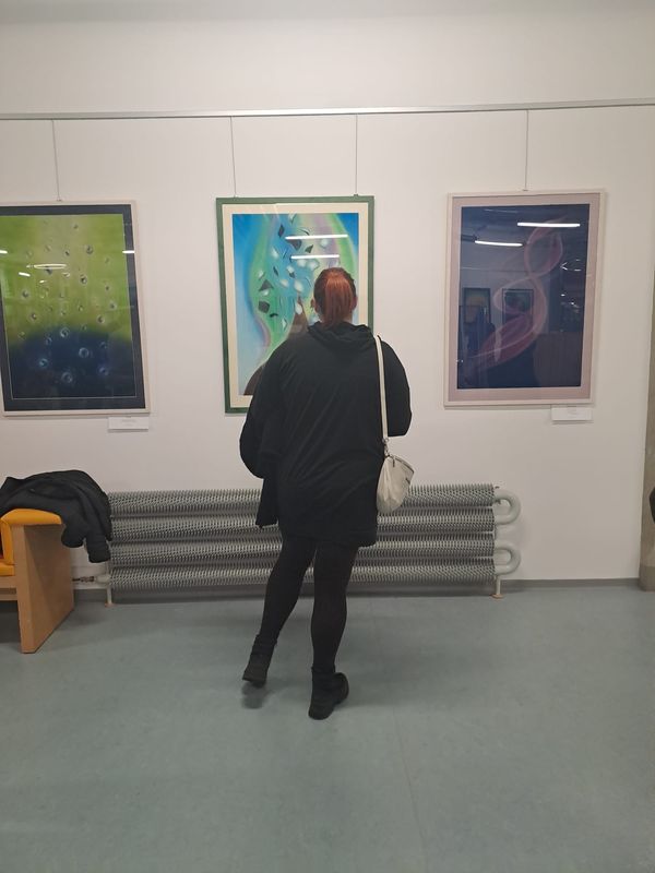 Moc! Jednak je krásný ten prostor. Vzdušný a zároveň vystavovat v prosklených vitrínách je úžasné. Působí to nesmírně čistě, profesionálně a ta kombinace se suchými pastely, protože vystavuji spolu s Kristinou Pecharovou, která na této výstavě prezentuje své obrazy, mi připadá velmi šťastná. A v knihovně vystavuji velmi ráda, spolupracuji s knihovnou už delší dobu. Takže z výstavy mám velkou radost.